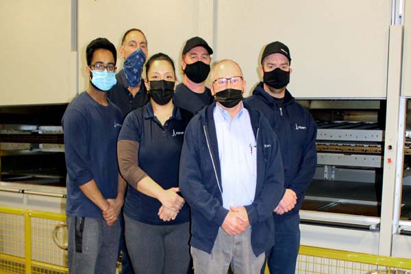 The Albarrie team at the new machine in the company’splant in Barrie, Ontario.