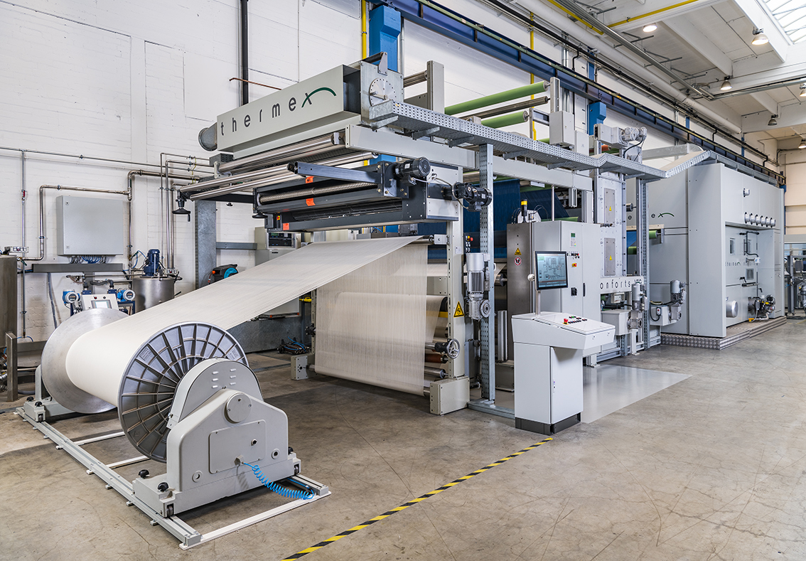 The company is primarily finishing 100% cotton fabrics in wide widths, in the weight range of 130-200gsm, with very even conditions required for the squeezing.